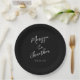 Modern Black White Hand Lettered Script Wedding Paper Plates