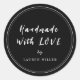 Personalized Handmade with love in modern script on black background. Adds a pretty finishing touch for all of your handmade gifts.