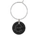 Modern Black White Leafy Crest Monogram Wedding Wine Charm