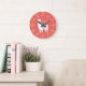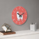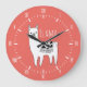 Coral pink modern and cute llama wall clock with white roman numerals.