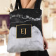 Modern Black White Marble Texture Gold Monogrammed Tote Bag