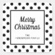 Personalized Modern Black White Merry Christmas Square Sticker.