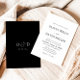 Yes, you can print on the back of your invitation for free! Most designs already have a corresponding design on the back that can be personalized using the Design Tool and going to Layers. This is a great way to communicate more information or further personalize your Modern Black White Minimalist Wedding Invitation. The option is really up to you.