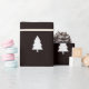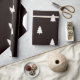 Modern Christmas trees wrapping paper. Simple black and white Nordic-inspired design features a minimalist array of Christmas trees, creating a chic look for your holiday presents.