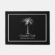 Add your own special touch to this simply elegant design featuring your family name or phrase and established date in white text and palm tree framed in a white border over a black background.