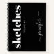 Modern Black White Personalized Sketchbook Name Notebook