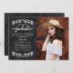This lovely, elegant graduation announcement features a photo of the high school graduate on the front of the card, with a pretty, white calligraphy script font and an elegant white leafy border on a black marble background. Front and Back of the card has subtle black marble pattern. Add your photo to this stylish, classy and simple graduation design! Designed for you by Blackberry Boulevard.