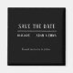 Minimalist Save the Date magnet with a dramatic flair. Square with black background and white text. Simply elegant.