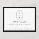 A timeless, classic, and elegant wedding save-the-date postcard card with a modern minimal aesthetic in classic black and white. Simple elegant monogram crest with simple typography arranged in a modern layout. **All colors can be changed to suit your wedding color preference. Check out our other matching wedding items for this collection.