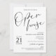 Create modern business invites for your real estate event or house warming party with this minimalist Open House Invitation. This simple black and white property sale event invitation features a simple minimal layout with trendy script fonts and space for your logo and event details.