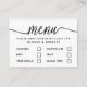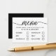 Easily personalize these menu selection cards with your own wording by using the "personalize this template" section or click the "customize further" link to change the font styles, colors and layout to suite. There is also room on the back of the card to add more wording or a photo of your choice.