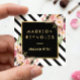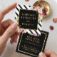 Modern Black White Stripes Pink Floral Gold Frame Square Business Card