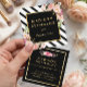 Make a great impression with this stylish "Modern Black White Stripes Pink Floral Gold Frame Square Business Card" template. Create yours today!