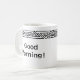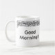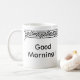 This personalized latte mug with a Black and White Triangles Border is a beautiful blend of aesthetics and functionality. Its sleek design, premium materials, and customization options make it a cherished item that enhances your coffee or tea-drinking experience while adding a touch of elegance to your daily routine. Good Morning!