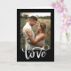 This Valentine's card features a vibrant handwritten typography "love" with one couple photo on a black background. You can easily customize the text inside the card or just delete it.