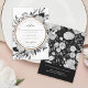 Black and white watercolor florals of hydrangeas, eucalyptus and peonies with faux gold circular border (optional). All text is customizable, as well as the backer pattern.