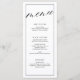 Enhance your reception with this modern black and white menu card, featuring elegant cursive script. Its minimalist design and versatile style make it a perfect fit for any sophisticated or formal wedding.