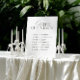 An elegant black and white wedding order of events sign — perfect for displaying your ceremony and reception timeline. Designed with a modern fine-art aesthetic, featuring classic serif and flowing script typography for a refined, timeless look. Ideal for minimalist, formal, or black-tie weddings. Easily customize times and event names to match your day — from the ceremony and cocktail hour to dinner, first dance, and grand exit. Part of the Rhea Collection — explore matching welcome, bar, and seating signs to complete your event suite.