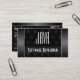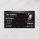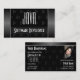 Make a lasting impression with this elegant business card design featuring shimmery black and white gradient borders and monogram pattern on a black background.