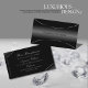 YOUR FAVORITE - Make a lasting impression with this elegant and luxurious business card design featuring shimmery silver decor borders on a black gradient background.