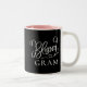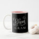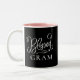 Gram design with a hand lettering and an arrow with heart. Personalize the side of grandparent design with grandchildren names. Visit our shop to view this mug in a large assortment of grandmother names.