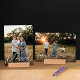 This two sided modern wood block photo holder features a full-frame vertical photo with "Blessed" in white script on the front. The back features a full-frame horizontal photo and "Family is Everything" in white script. This is a wonderful gift for anyone such as parents, grandparents, or just for yourself!