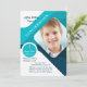 A modern photo invitation, in shades of teal and blue with a white background and a diagonal photo window. The cross can be dragged to any location, made larger or smaller or eliminated. (<a href='https://www.freepik.com/free-vector/abstract-business-cover-template-with-photo_2401392.htm'>Designed by Freepik</a>. <a href='https://www.freepik.com/free-photo/student-with-backpack-on-one-shoulder_861082.htm'>Designed by Pressfoto</a>). <br/><br/>The card is easy to customize with your wording, font, font color and choice of six paper types.<br/><br/>Not exactly what you're looking for? All our products can be custom designed to meet your needs at no extra charge.<br/><br/>Simply contact us at askcottonlamb@gmail.com<br/><br/>Coordinating products available: