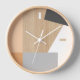Modern Block Stripes Pattern Art On Faux Woodgrain Clock