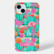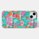 Customize this colorful watercolor iPhone 15 plus case featuring cacti with beautiful blooms in pinks and oranges with your name in a modern CAP font in white on pink. It's so modern and trendy!