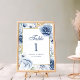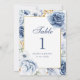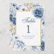 Guide your guests in style with this elegant wedding table number card from the Modern Blue and Gold Floral Collection. Designed with soft watercolor florals in dusty blue and golden hues, a refined gold border, and classic serif typography, this card brings timeless beauty to your reception tables.