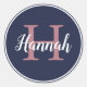 Modern Blue and Pink Script Monogram Name Classic Round Sticker