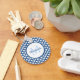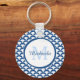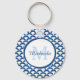 Give your style a modern edge with this graphic blue and white fish scale scallop pattern basic keychain that you can personalize by adding your name and monogram initial to. This trendy geometric shell pattern design is bold, yet stylish.