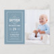 Affordable custom printed baby boy Baptism postcard invitations. This classic design features a modern typography layout next to your child's photo. Keep the sweet blue background or use the design tools to choose any background color and edit the fonts to suit your style. Personalize the design with your child's Baptism party details. Have fun creating your own unique Christening invitation for your baby boy.