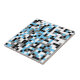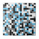 This ceramic tile features a colorful geometric pattern in sky blue, black, gray and white. The squares are colored in a random pattern and you can edit the colors in the Design tool.