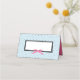 This modern classic tent card features a chic pink ribbon on a black border rectangle against a light blue and black polka dot background on the front/outside and a solid pink inside which you can keep or remove. It's a versatile place card that you can use for any event such as weddings, parties, baby showers, bridal showers or even for your meetings and conferences.