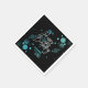 A modern, stylish and glamorous birthday napkin. This design features a vibrant typography "Happy Birthday" with blue gradient bokeh on a black background. Personalize and add your party details. Make your milestone birthday an extraordinary event!