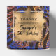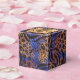 Zebra stripes and leopard spots on blue, brown and gold print pattern 2" square favor boxes feature your thank you message on gold faux foil on the top in chic lettering. Beautiful for birthday party favor boxes and more. MATCHING items in our store.