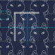 Modern Blue cat line art pattern Fabric