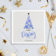 Modern blue ball Christmas tree, black stars, and the words Merry Christmas in chic lettering on a pale gray background, personalize these holiday napkins for any Christmas occasion, your home or give as a hostess gift. MATCHING items in our store.