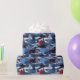 Modern blue Christmas trees patchwork Wrapping Paper.