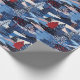 Modern blue Christmas trees patchwork Wrapping Paper