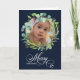 Modern Blue Elegant Script Eucalyptus Foliage Holiday Card