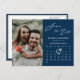 Modern Blue Elegant Script Photo Save the Date Announcement Postcard