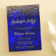Modern Blue Faux Gold Glitter Graduation Party Invitation
