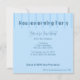 The design showcases artwork of a blue fence combined with customizable typography fields, creating a fun, elegant, and contemporary housewarming party invitation.