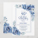 Plain white envelopes are included with paper invitations and will come to fit the invitation size you select. If you don’t need the envelopes, you may choose to not receive them by selecting the dropdown below "Envelopes" and choosing "None." If you’d like to have a design on your envelopes, you can browse all of these available envelopes to find the design that complements your Modern Blue Floral 95th Birthday Party Invitation.