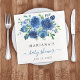 Modern navy blue watercolor floral boy baby shower paper napkins to decorated party tables with beautiful elegant script.