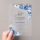 Modern Blue Floral Surprise 65th Birthday Party Acrylic Invitations