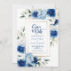 Modern Blue Floral Wedding Save the Date Invitation