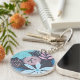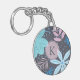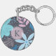 Modern Blue Flower Pattern Pink Monogram Keychain